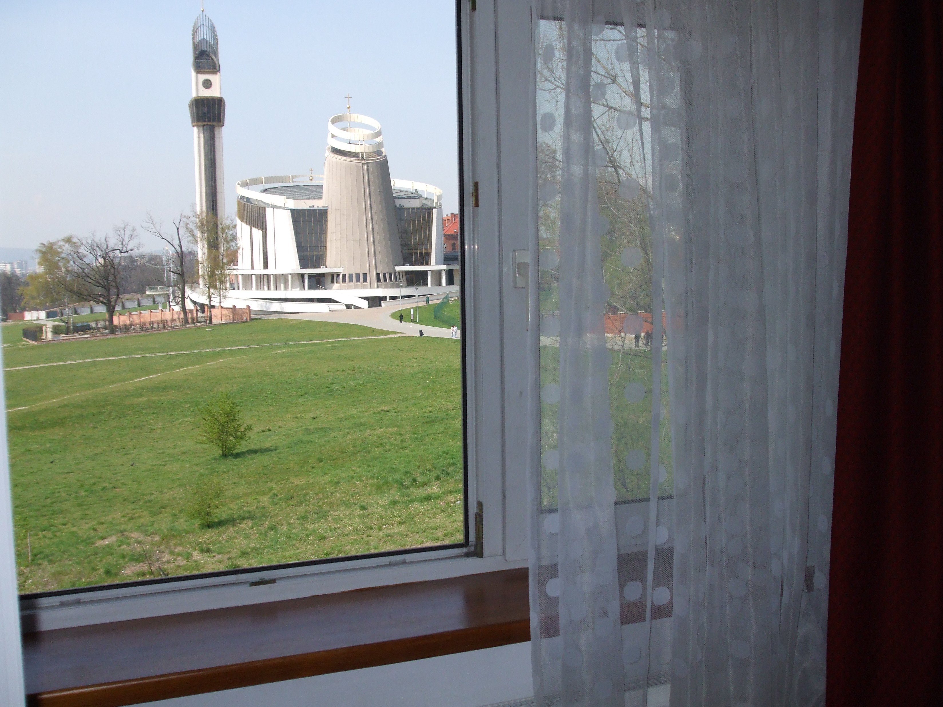 Dom na tle Sanktuarium Bożego Miłosierdzia