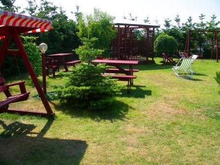 Na otoczonym dużym zielonym terenie istnieje możliwość zorganizowania grilla lub ogniska, znajduje się także plac zabaw, wyposażony w huśtawki i piaskownicę oraz ogród i taras z leżakami, stołami, parasolami słonecznymi. Oferujemy także wypożyczenie sprzętu sportowego np. rowery.