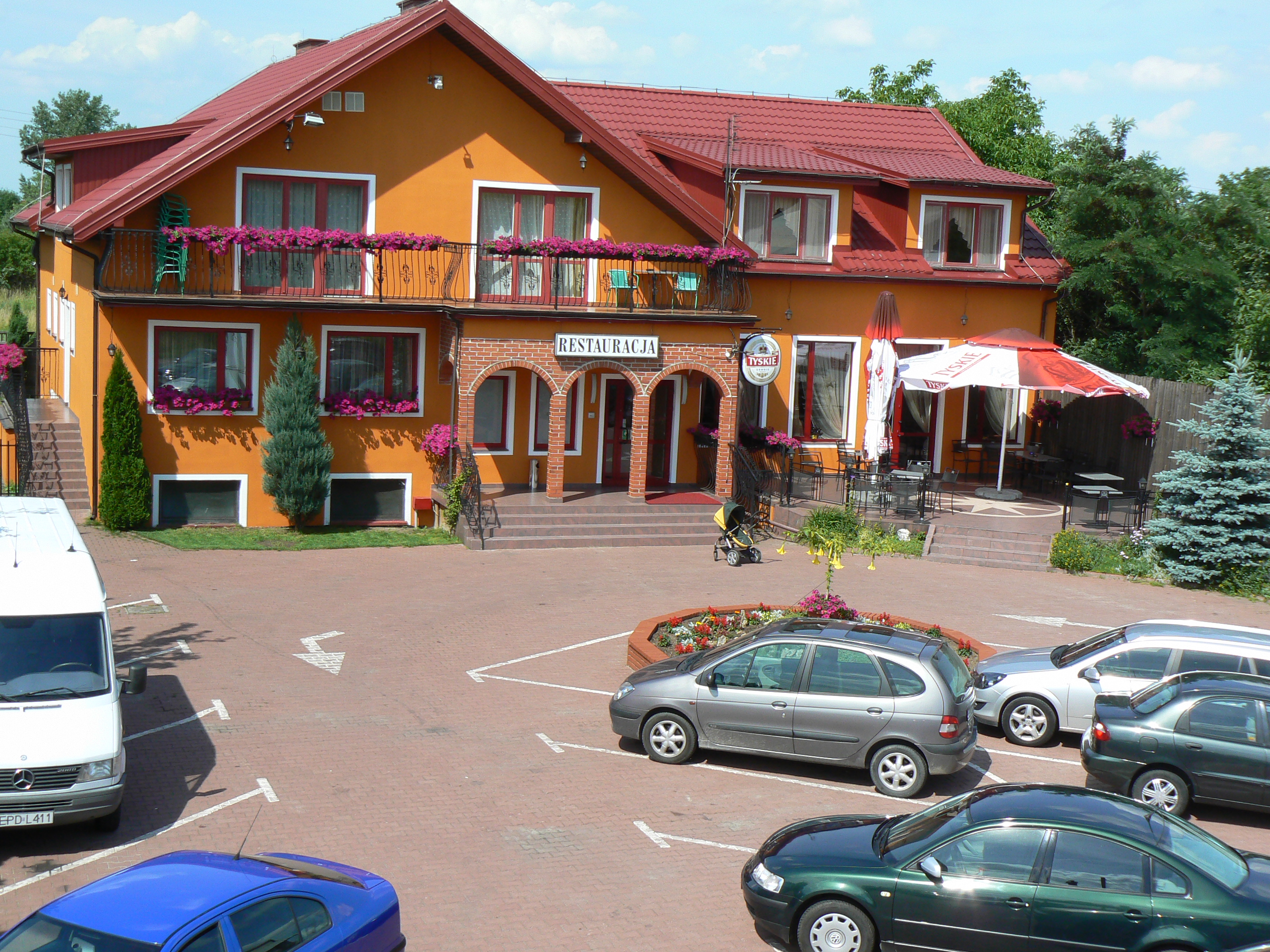 Do dyspozycji gości mamy : 12 pokoi 1,2,3, osobowych o różnym standardzie 3 klimatyzowane sale: - restauracyjna (kuchnia polska) - bankietowa - konferencyjna atrakcyjny taras duży, bezpłatny parking na ok.30 samochodów w obiekcie darmowy dostęp do Internetu